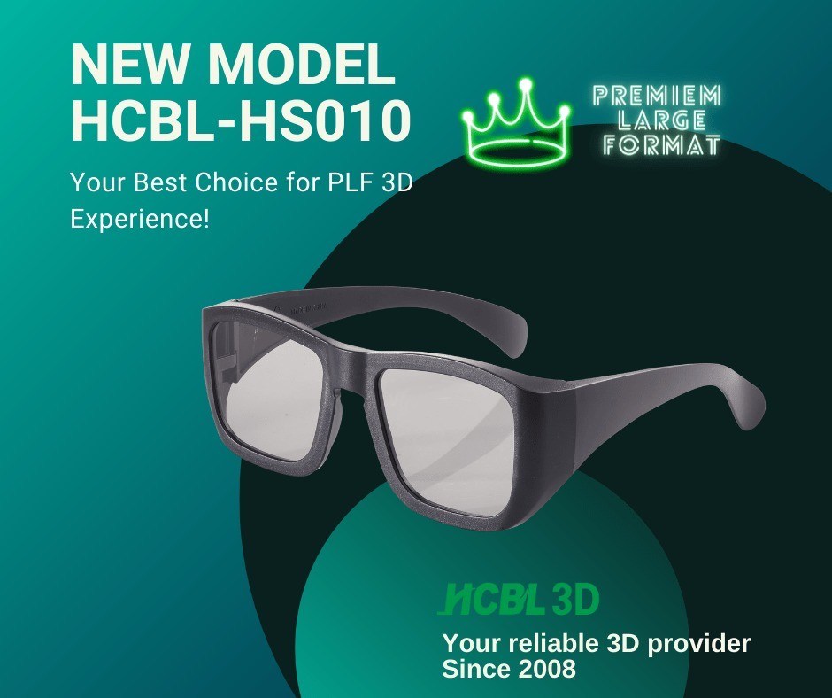 Polarized passive 3D glasses model HS010 is HCBL's new design for the PLF experience, fused with HCBL high-performance passive 3D lenses. It can be well customized to fit in all PLF experience including xenon lamp system, and cinema LASER system!